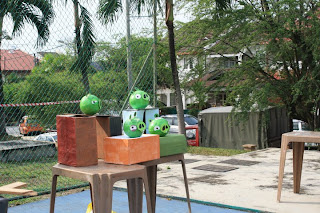 Ever felt playing Angry Birds App on your cell isn't getting enough of your excitement? In response to our school's upcoming annually-celebrated Family Day, we decided to pull off a game that takes Angry Birds Lovers on a whole new level of playing it. Stemming from an inspiration of a real life 'Angry Bird' game from Taylor's, this game mechanics and how it's played would work the same way of how you play the game, basically without the slingshot and the strangely-set physics environment of the game.(Of course,without the 'button clicking reaction' as well)